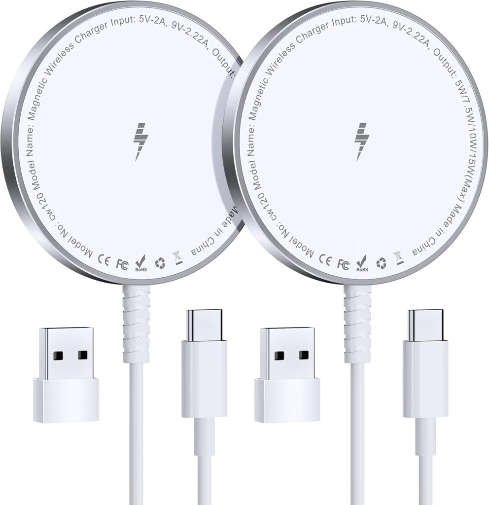 Bohuma Magnetic Wireless Charger for iPhone: Mag Safe Charger Fast Charging Pad 2 Pack Compatible with iPhone 16 15 14 13 12 Pro Max Plus & Airpods 2 3 Pro (No Adapter)